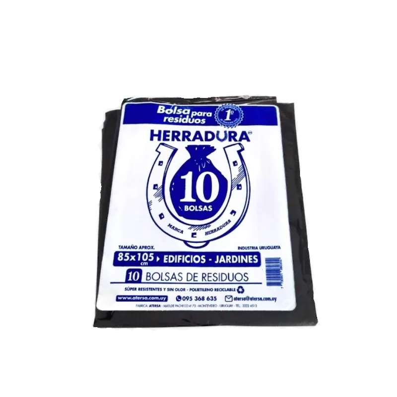 Bolsas de Residuos Herradura 85 x 105 cm es una opción confiable y resistente para la gestión de residuos de gran volumen. Su tamaño permite contener una gran cantidad de desechos, lo que la convierte en una excelente elección tanto para uso doméstico como profesional. Ya sea para tareas de limpieza general, residuos de cocina, jardinería o incluso para uso en oficinas, comercios y eventos, estas bolsas están diseñadas para soportar peso y evitar roturas o filtraciones.
