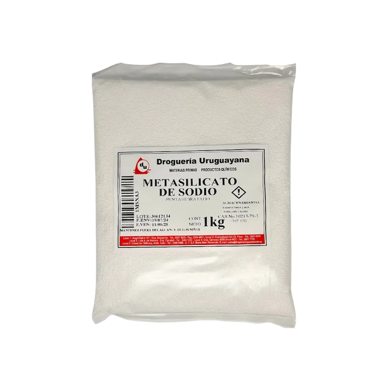 El metasilicato de sodio es un compuesto químico inorgánico que se utiliza en la industria por sus propiedades detergentes, desengrasantes y estabilizantes. También se le conoce como silicato de sodio pentahidratado o vidrio soluble.